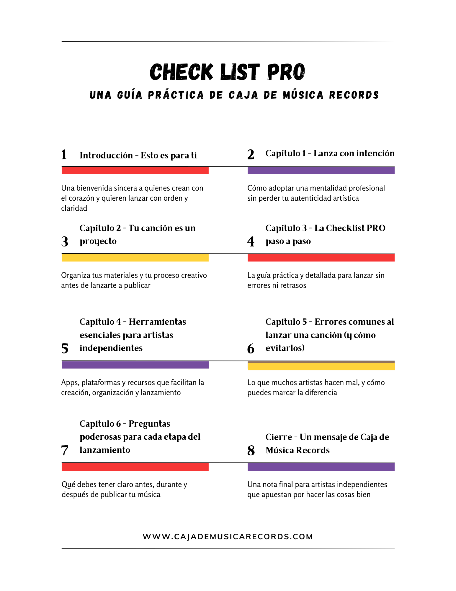 La Checklist Pro te guía paso a paso para que tu estrategia musical avance con seguridad y claridad, sin improvisaciones ni dudas sobre lo que hacer a continuación.